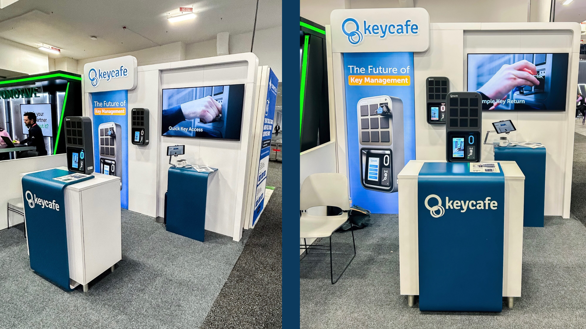 This approach keeps the booth clean and professional while still allowing your team to engage visitors comfortably.