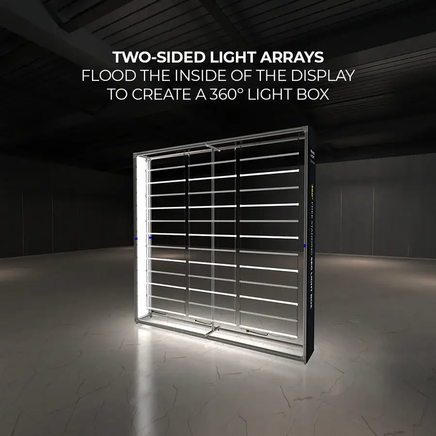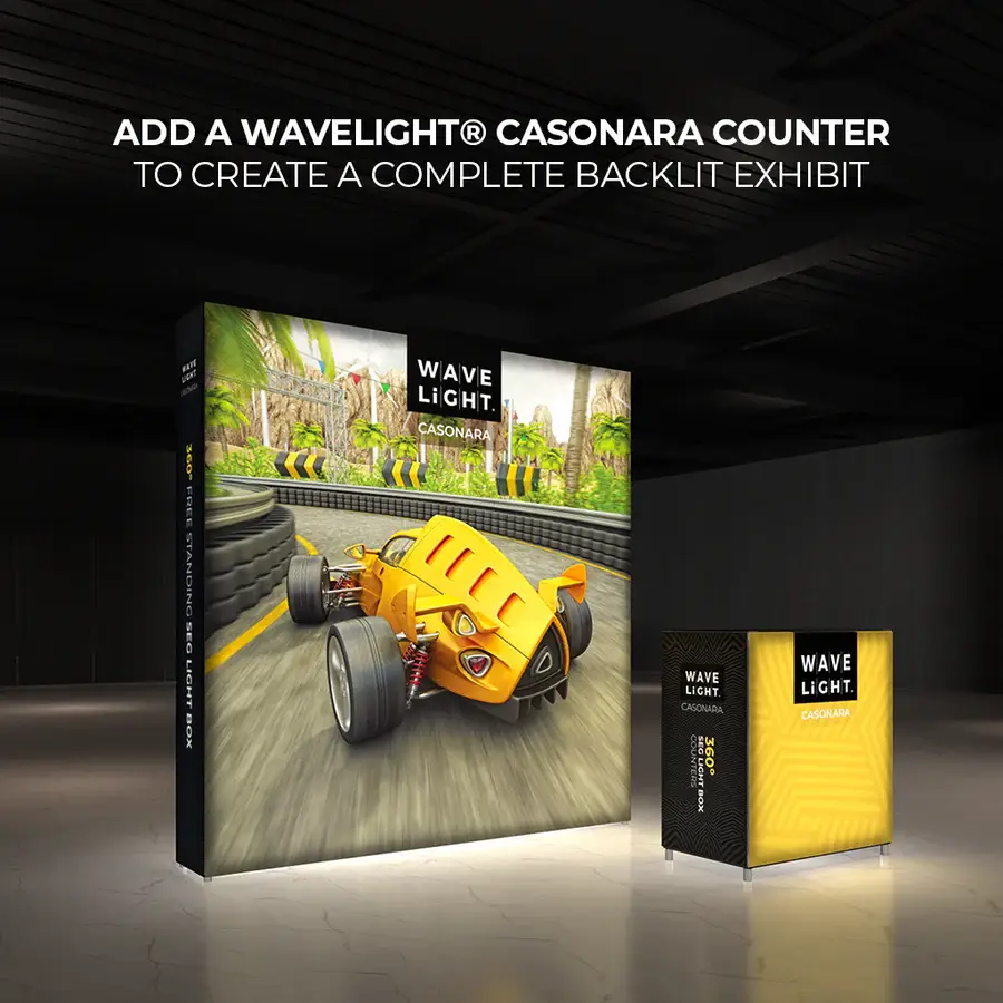 Breathe new light into your brand, exhibit, event or retail shop with the WaveLight® Casonara SEG Light Box Displays. This pioneering new SEG tension fabric light box is designed to make backlit graphics more portable, modular and customizable. Our 360º illumination technology provides more visibility for your brand and more places to present your ideas. We have also color coded the frames which provides our users the ability to quickly assemble and disassemble the display without tools ––or breaking a sweat.