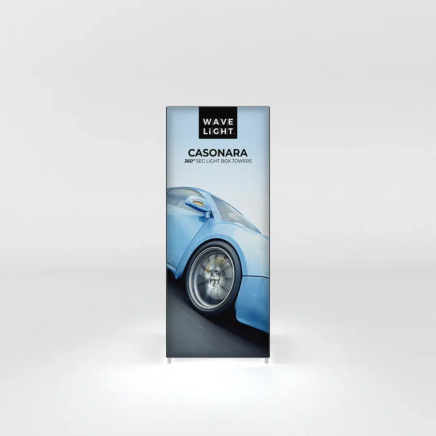 Breathe new light into your brand, exhibit, event or retail shop with the WaveLight® Casonara Tower Light Box Displays. This pioneering new SEG tension fabric light box is designed to make backlit graphics more portable, modular and customizable. Our 360º illumination technology provides more visibility for your brand and more places to present your ideas. We have also color coded the frames which provides our users the ability to quickly assemble and disassemble the display without tools ––or breaking a sweat.